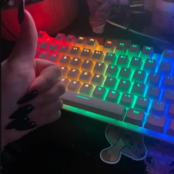 This keyboard is a high-quality find for its price. It perfectly fits the adorable keycaps I received for Christmas. Changing the keycaps was a breeze thanks to its compatible cross-shaped swatches.
