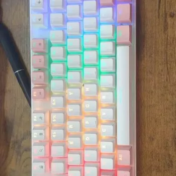 For its price, this keyboard is impressive. I love its vibrant colors and the way the keys sound is oddly pleasing. Tip: Change the color with Fn and Ins. 💕