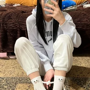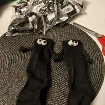 What sets our Magnetic Couple Socks apart is their innovative magnetic feature. Say goodbye to the frustration of lost socks! Our socks come equipped with magnetic suction, ensuring your pairs remain together, always. Their cute and quirky design, featuring cartoon dolls holding hands, adds a sweet touch to your wardrobe. Crafted from breathable polyester, these socks are designed for all-day comfort, making them perfect for any season, especially summer.