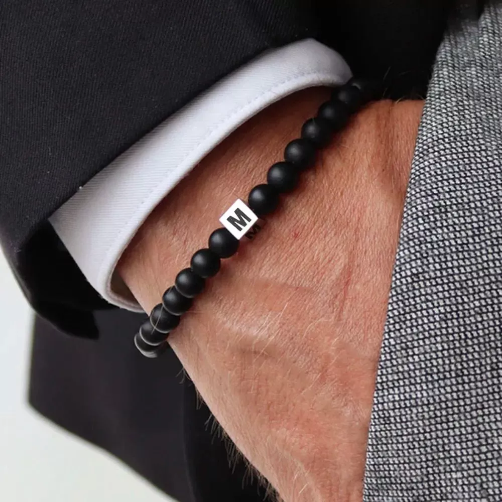 Classic Stainless Steel Initial Bracelet with Stone Beads