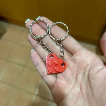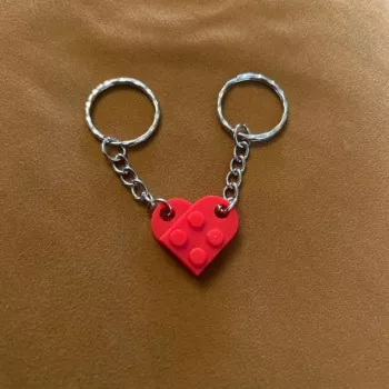 I purchased two sets of these keychains for Valentine's Day: one for my husband and me, and the other for our kids' backpacks. They are a lot of fun, resembling regular brick pieces that transform into a heart when brought together. We absolutely adore these keychains.