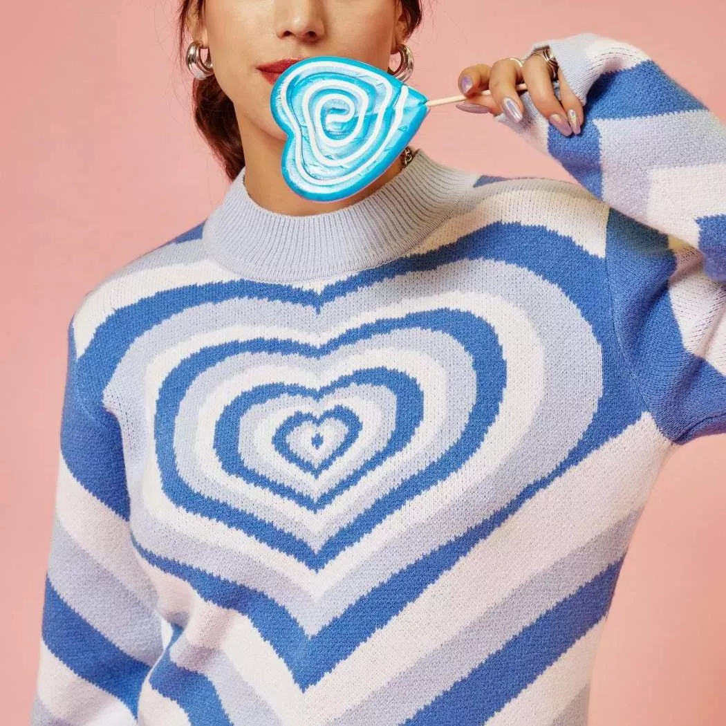 Discover Cozy Chic with Our Colorful Heart Print Knit Turtleneck Sweater
