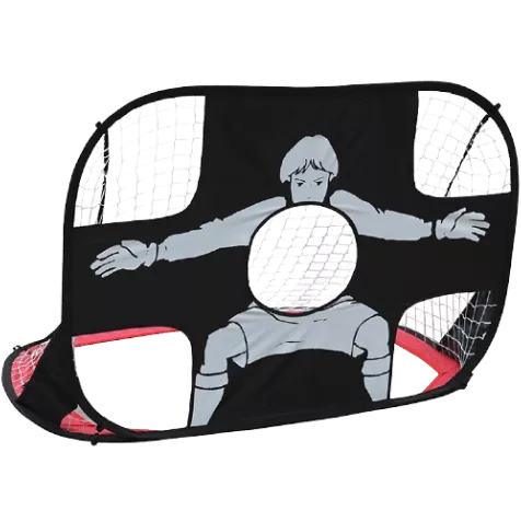 Done practicing those kicks? Flip the net down to the ground, and the practice goalie now becomes the tanding base for a real goalie.