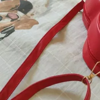 I'm so enamored with this purse that I've bought it twice - once for myself and once for my mother, who also adores it. It's exquisitely made and spacious, with a vibrant red hue. It's an adorable little heart-shaped purse that's well worth the price. I've had fun experimenting with different chains and accessories to make it even more stylish.