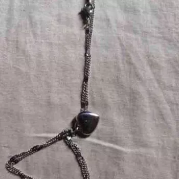 This necklace is so lovely, shiny, and of good quality. The little heart charm is adorable. It comes with plenty of adjusters, so you can get the perfect length. It sits just above the chest, as shown in the picture.