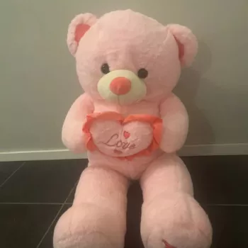This is the most adorable and softest bear ever. Although it arrived vacuum-packed, it fluffed up beautifully and appears even better than in the pictures. I'm in love with it, especially the adorable pink color.