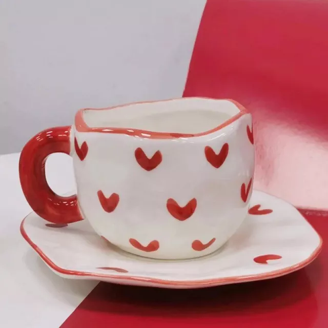 home creative Valentine's Day cup Heart-shaped ceramic coffee cup set Romantic Valentine's Day pink love ceramic coffee cup set