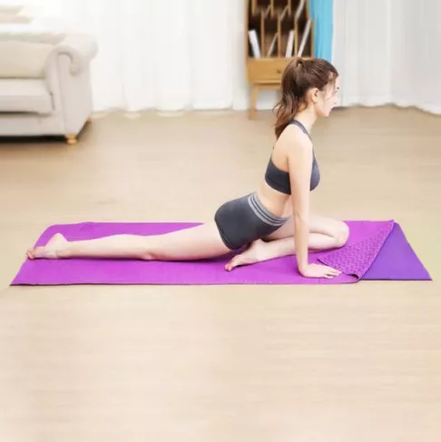 This towel is created with anti-slip and massage features for a comfortable yoga session. Soft, thick & comfortable. Size: 72 x 24 inches. Materials: 80% polyester, 20% polyamide. Color: purple.