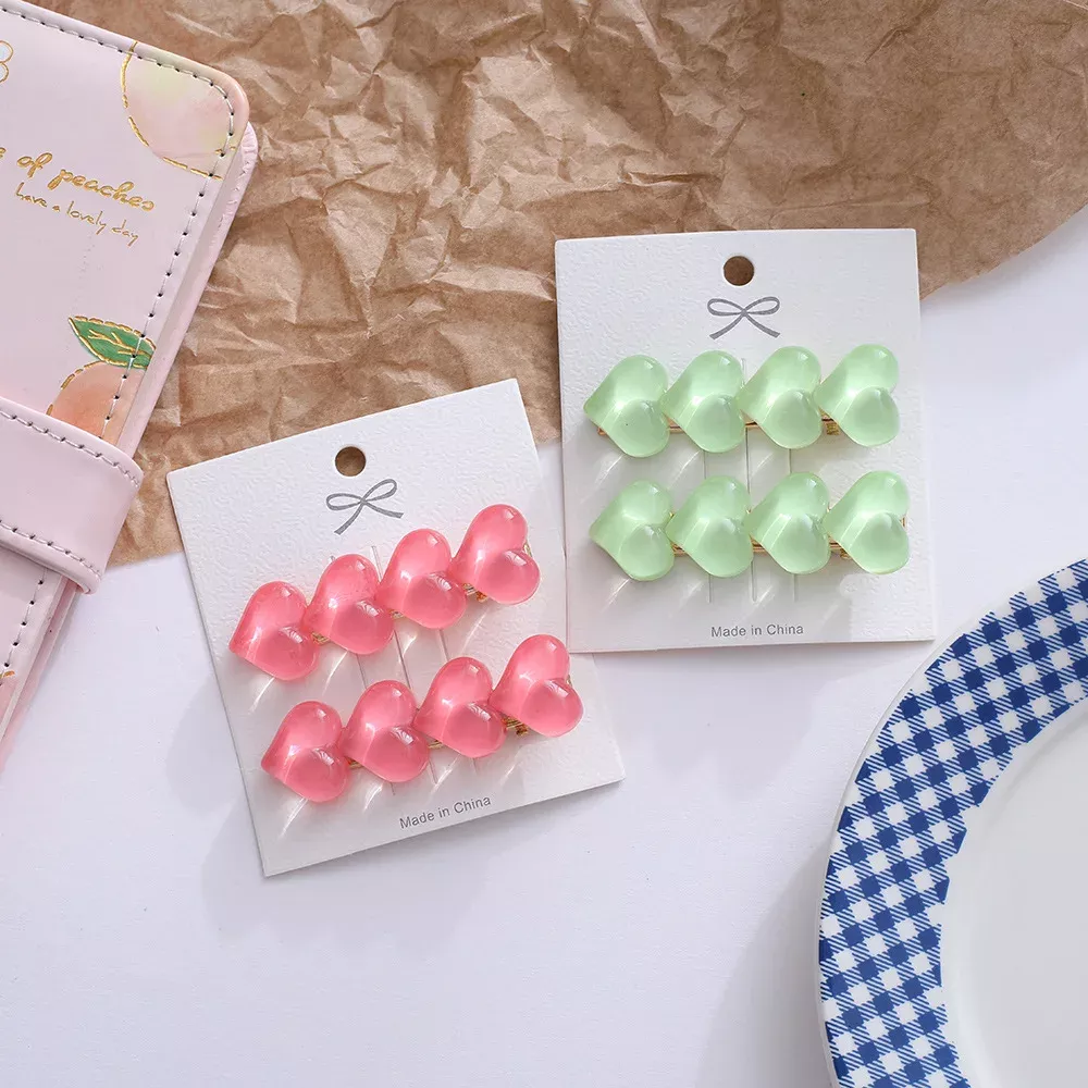 Our Pink Gradient Love Jelly Hair Clips are perfect for various occasions. Use them to add a pop of color and sweetness to your party outfits, to keep your hair tidy and stylish at the office, or to accessorize your casual looks for outings with friends or family. They’re also an excellent choice for dance performances, adding a cute touch to your costume.