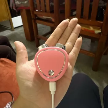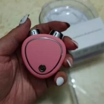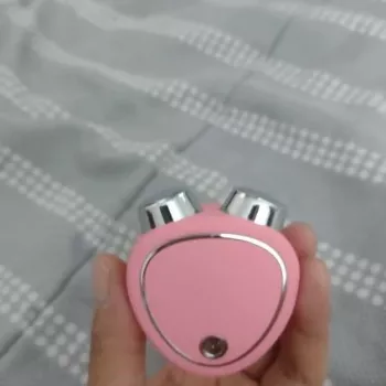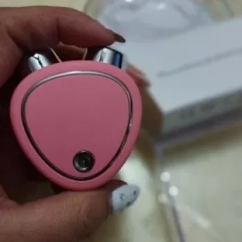 This device is lightweight and adorable. It fits comfortably in your hand. While the settings aren't overly intense, you'll definitely feel it gently pushing against your skin. I've been using it with some serum for my double chin, and I'm excited to see the results.