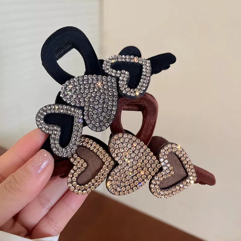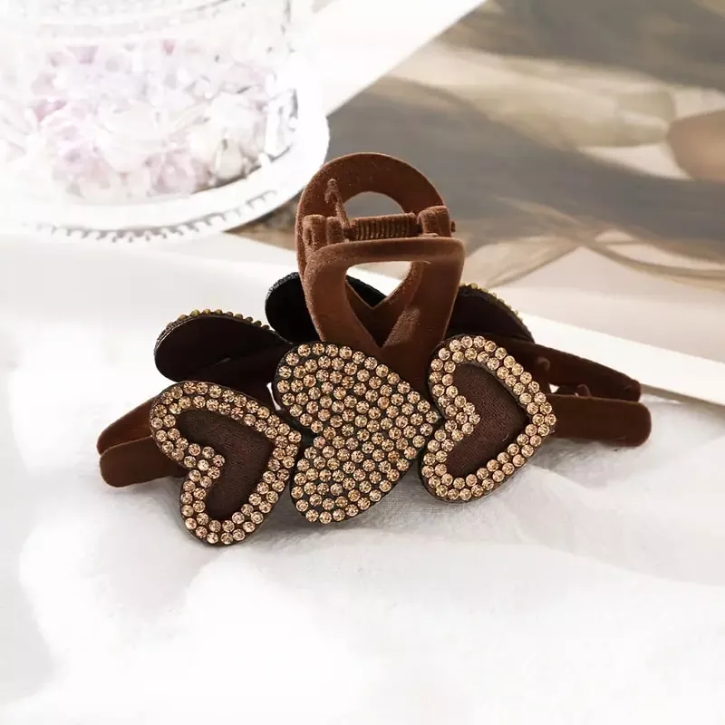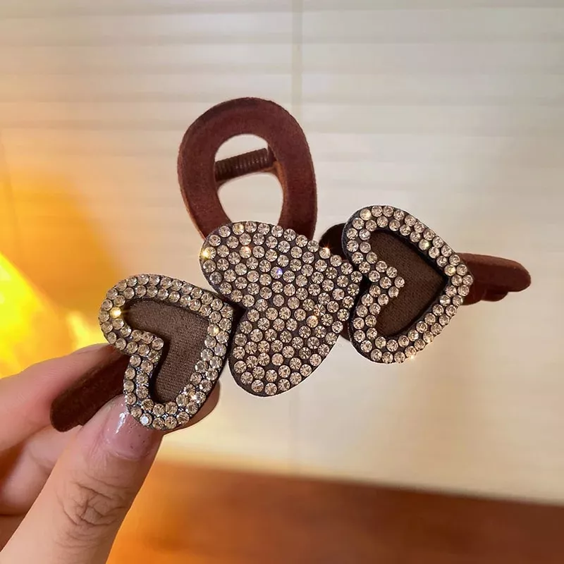Elevate your everyday look with our Three Hearts Shimmer Rhinestone Pearls Metal Hairpin Hair Accessories Grab Hair Claw. This exquisite hair accessory is designed to add a touch of glamour to your hairstyle, effortlessly blending sophistication with functionality.