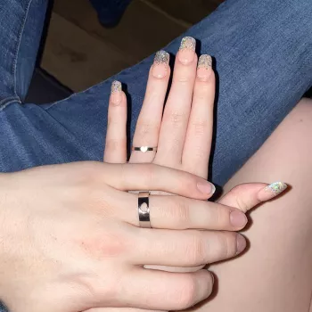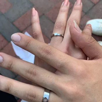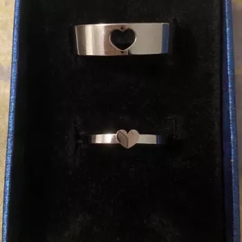 I got these rings for my wife and me because our wedding rings are too big now. The heart-shaped details on the rings connect together, which is what really made me love them. Great product, would definitely buy again if needed.
