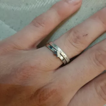 We picked this ring for our second anniversary. We wanted something small, affordable, and beautiful, and this ring was just right! It's made from great material and fits perfectly. I love the heart design and how it connects with the other ring. My husband and I wear them with our wedding bands. It's perfect for what we wanted!