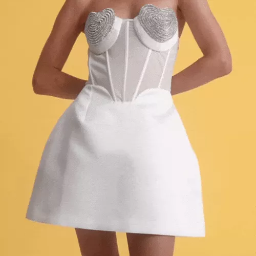 Our Strapless Sweetheart Crystal Mini Dress is not just a piece of clothing; it’s a statement of elegance and confidence. Designed for the modern woman who loves to stand out, this dress is best worn at weddings, parties, or any festive occasion. The combination of its flattering fit, romantic neckline, and minimalist design makes it special. It’s more than just a dress—it’s an experience in fashion, empowering you to feel your best.
