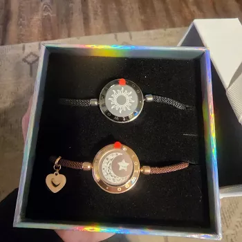 Experience the warmth of your loved one’s touch, no matter the miles between you, with our Sun & Moon Love Bracelets. Perfect for Valentine’s Day, these bracelets keep your connection alive through interactive light and vibration, symbolizing the unbreakable bond of your love.