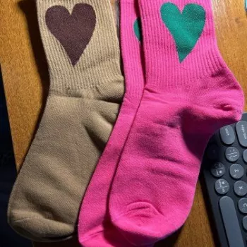 I purchased these socks on a whim and couldn't be happier with my decision. They're the perfect blend of cute and comfy. The heart design adds a playful touch, and they're soft enough to lounge in all day. Plus, they've held up great in the wash. An excellent buy!