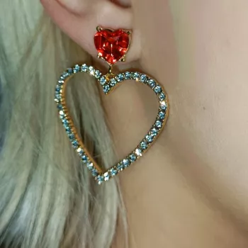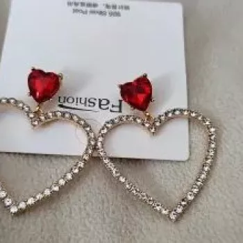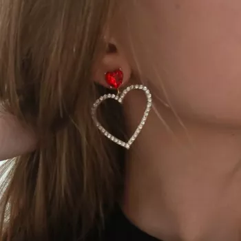 What sets these earrings apart is their unique blend of vintage and modern elements. The timeless heart design is given a trendy twist with the addition of radiant red crystals and sparkling rhinestones, making them a special piece that stands out in any jewelry collection.